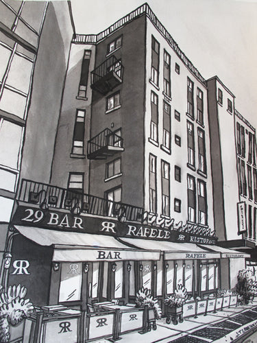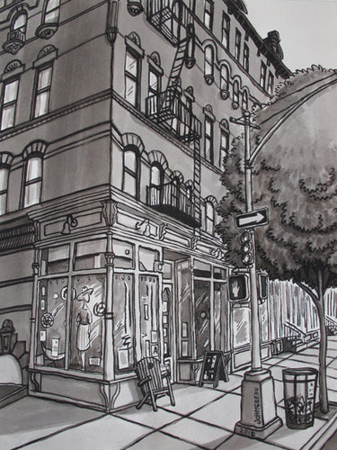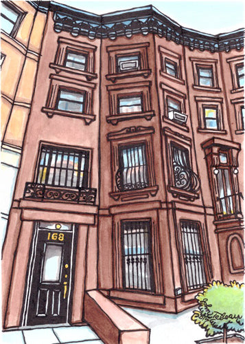 Then you and I start a conversation (see the button below) and talk about the size and style you’d like: as small as 5” by 7” to as large as 9” by 12”. I can do a clean, black and white line drawing, or go all the way with watercolors. I’ll send you a price sheet, and you can choose whatever fits your budget. All pieces are done on thick, heavy, acid-free Fabriano or Arches art paper. Optional framing is extra, and I can take care of that too, if you’d like, having it done by KC Art & Framing in Cobble Hill, a family-run business since 1983. I used to work at KC, and my people there will take care of your jo professionally and beautifully. (Framing prices start as low as $100 and go up from there.)